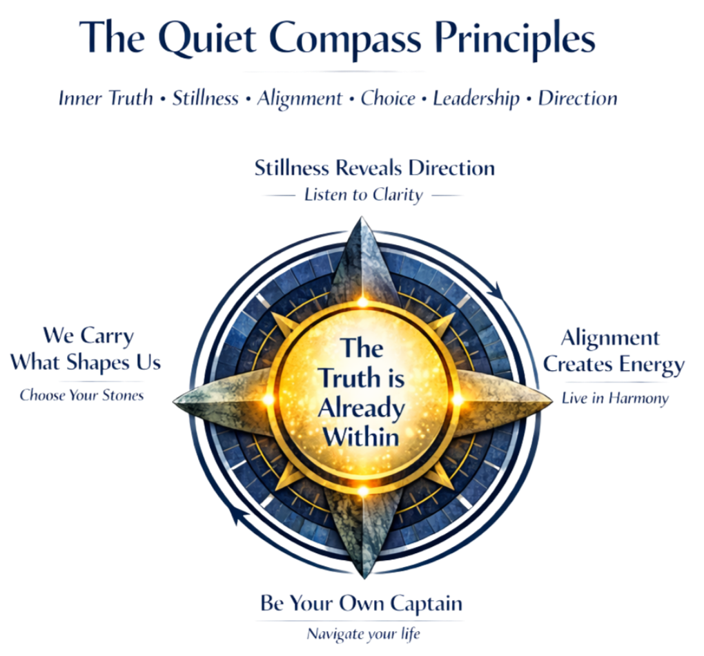 - In a world that rewards speed and noise, Quiet Compass teaches that direction emerges through pausing, listening, and allowing insight to surface.